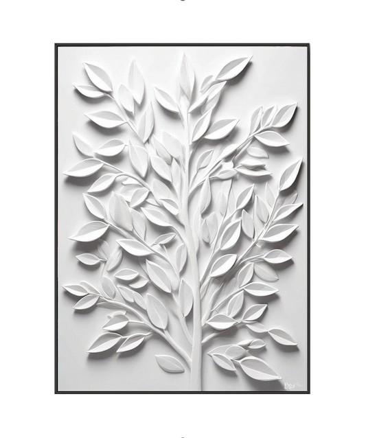 Ethereal White Foliage: The Serenity of a Leafy Branch