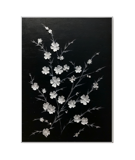 Silver Blooms Against the Night: A Delicate Floral Dance