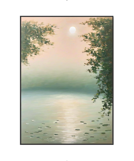 Misty Moonlight over the Lake