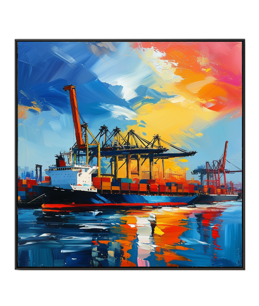 Harbor at Dusk: A Symphony of Colors and Commerce