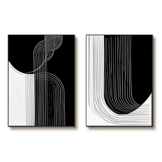 Échos du mouvement : abstractions linéaires en noir et blanc